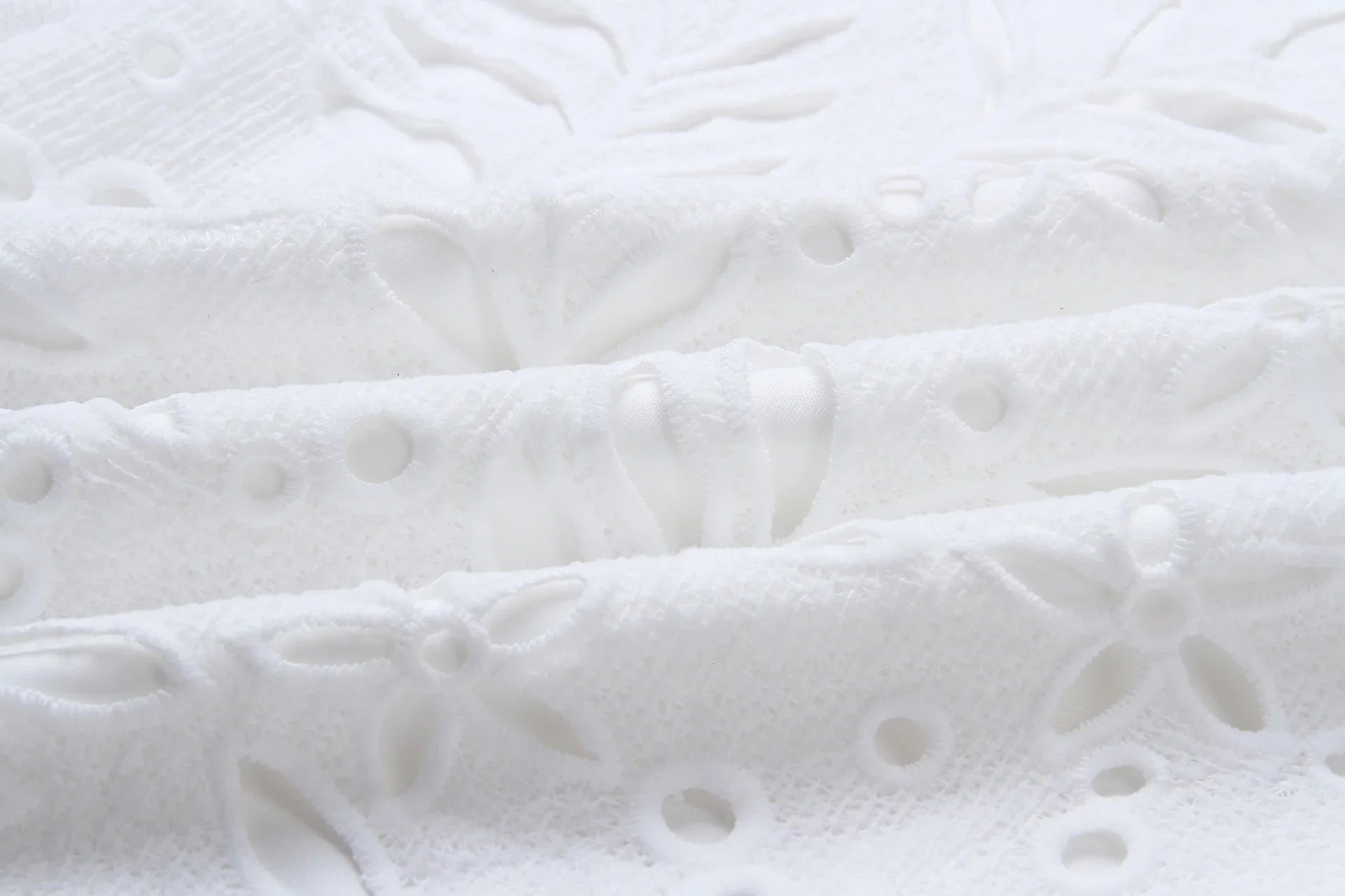 Women Hollow Eyelet Off Shoulder Mini Dress with Short Sleeves
