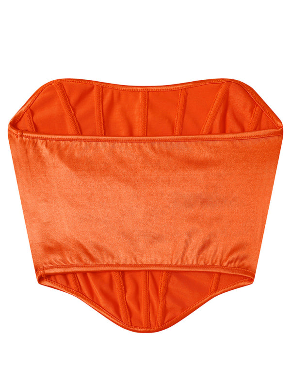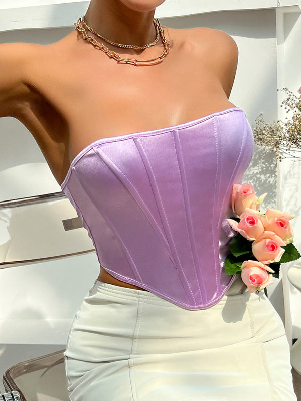 Step into the spotlight with this exquisitely crafted corset top. Not only does it offer a stunning silhouette with its strategic vertical paneling and strapless design, but its vibrant color is sure to turn heads at any event. Whether you're attending a high-profile party or a chic night out, this top is your ticket to a memorable entrance.