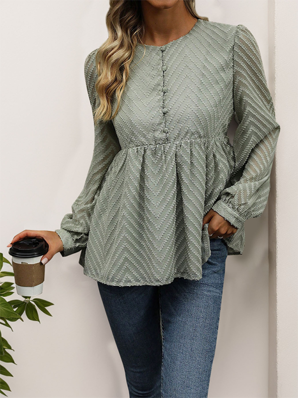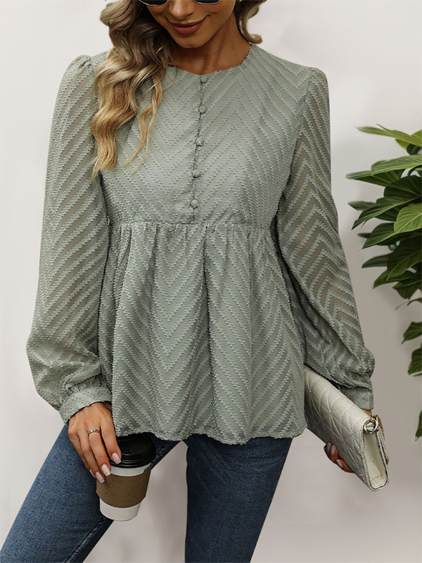 • Sleeve Type: Long sleeves with gentle gathers at the cuffs