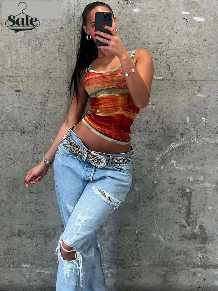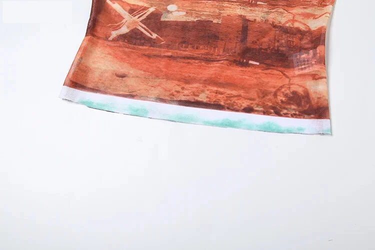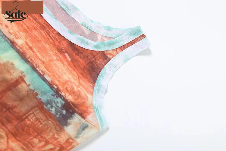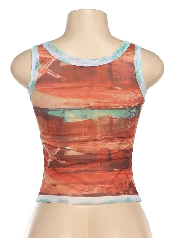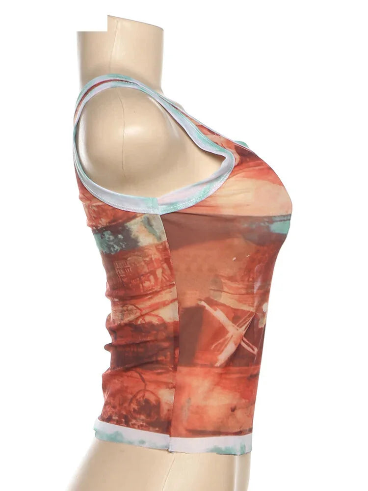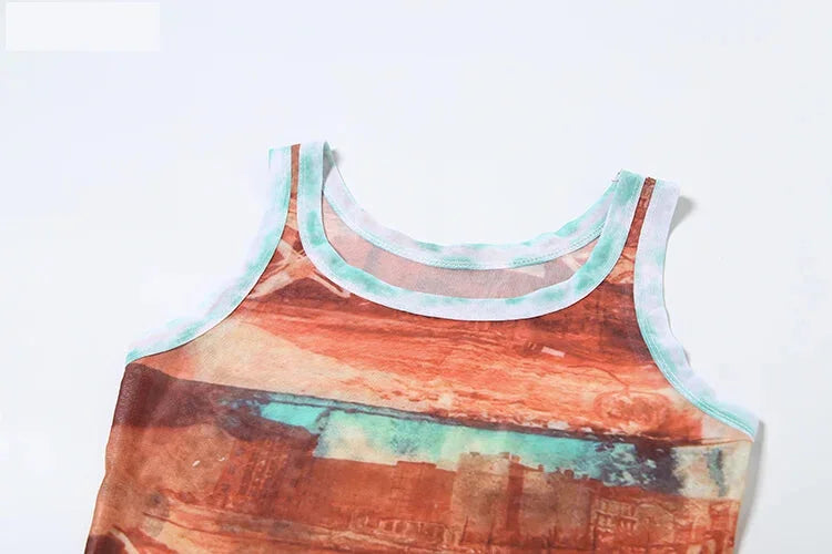 Crafted from a blend of polyester and spandex with high elasticity, this tank top ensures a slim fit that flatters your figure. The vintage sunset print adds a touch of retro charm, perfect for beach days, summer barbecues, music festivals, and other outdoor activities.