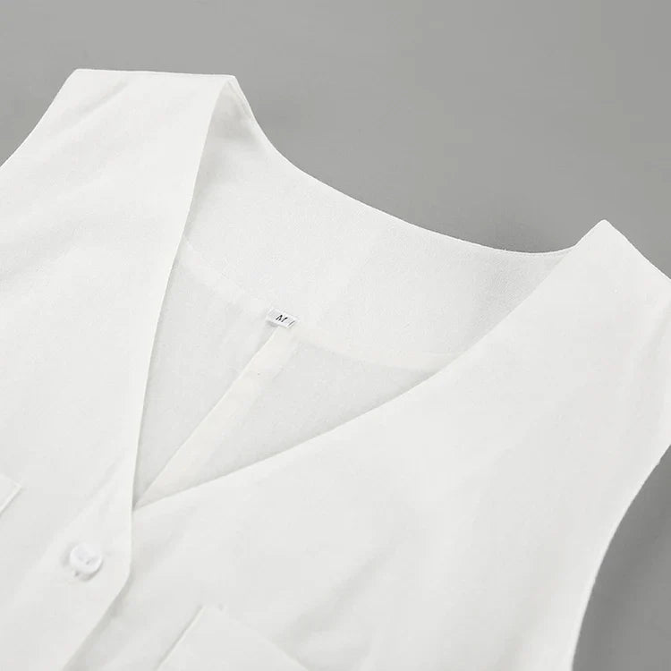 Crafted from 100% cotton with a natural waistline and no-elasticity fabric, this romper offers a relaxed yet stylish fit. The V-neckline and sleeveless design add a touch of sophistication, while the short-length skirt keeps it cool and breezy.