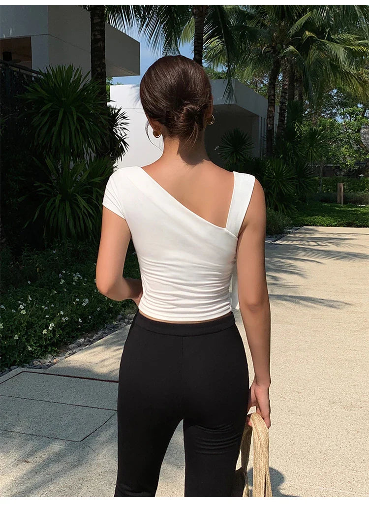 Summer Essential Women's Solid One-Shoulder Top