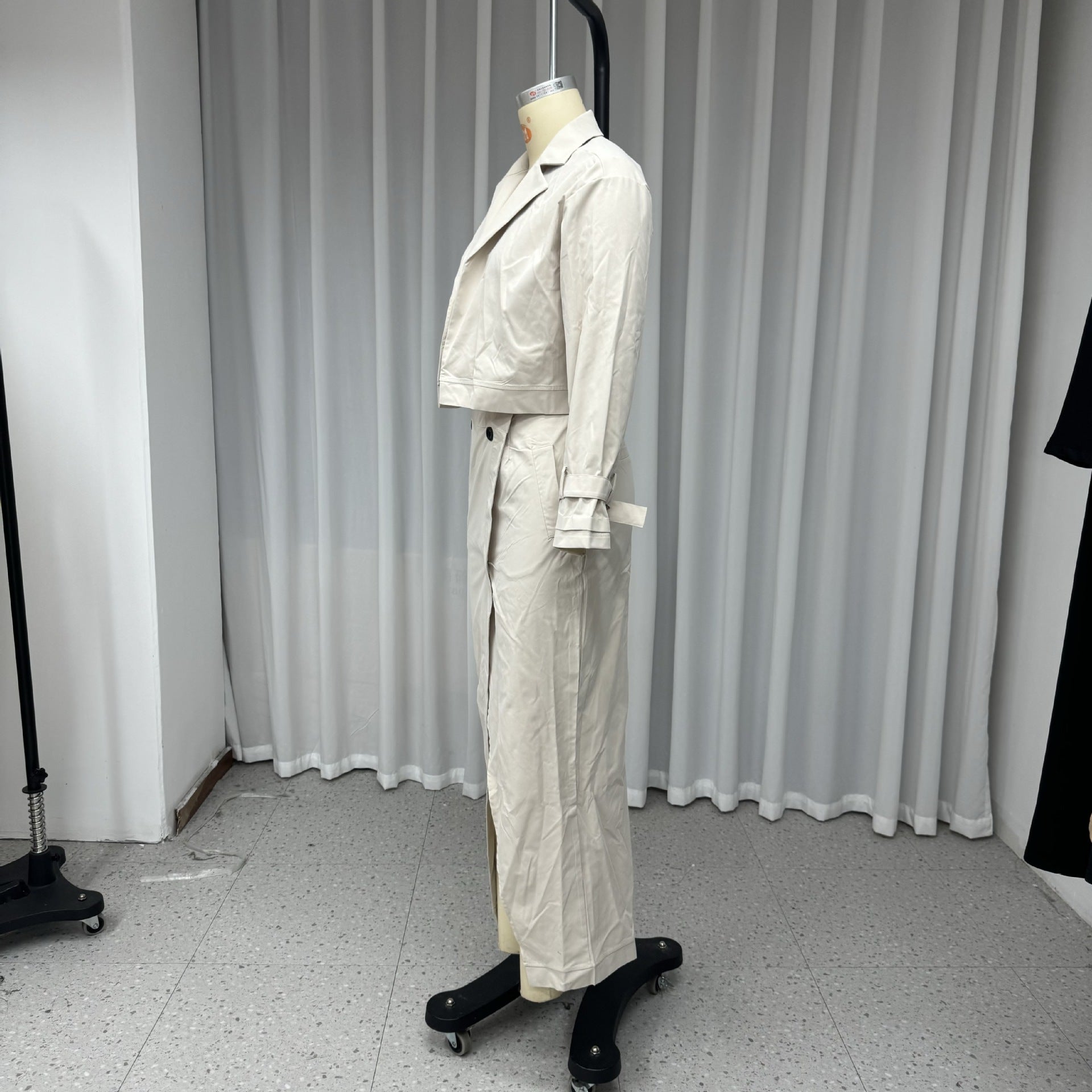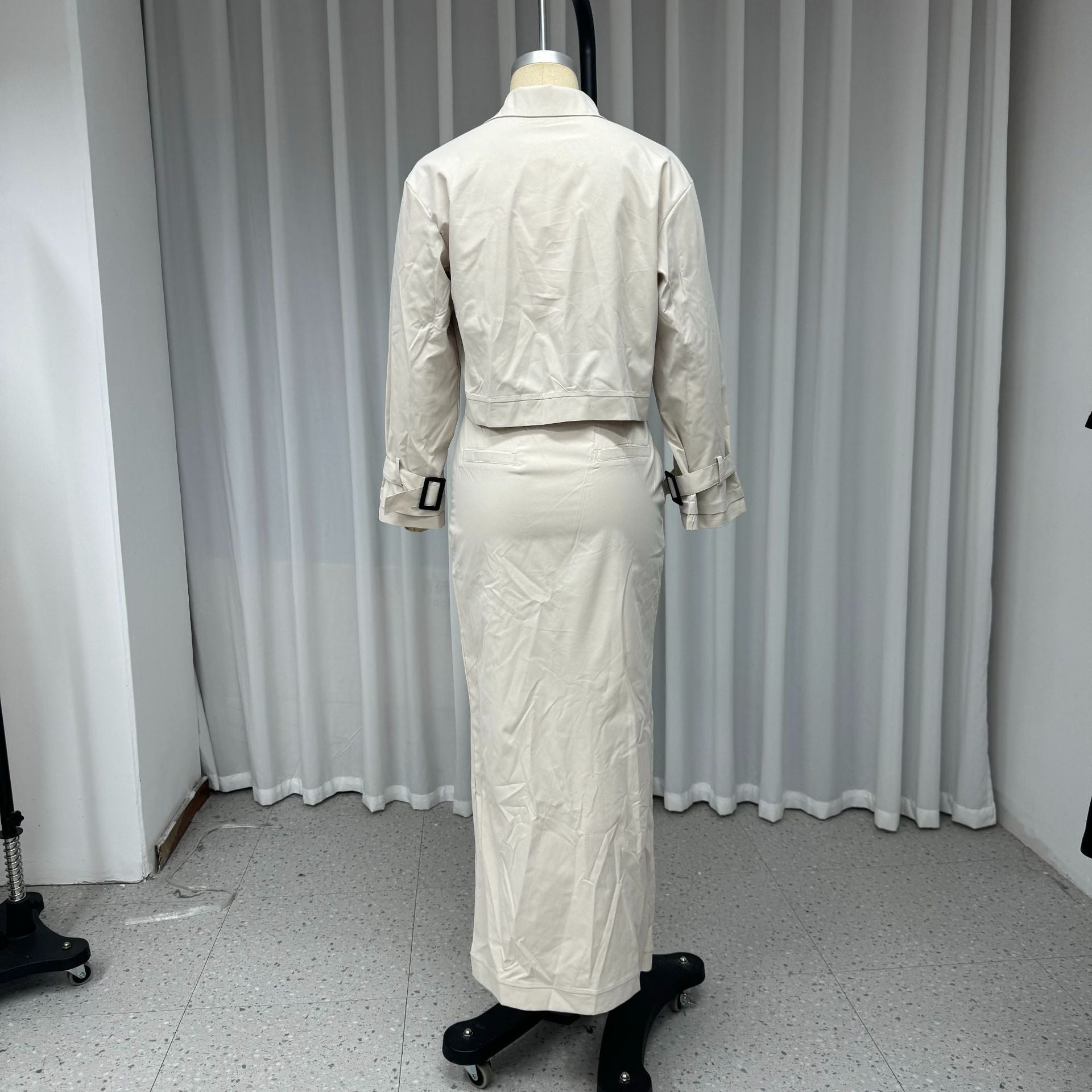 Women's Suit Lapel Patchwork Coat Skirt Two-piece Set Including Belt