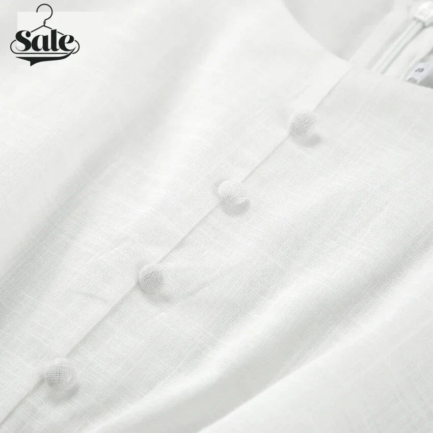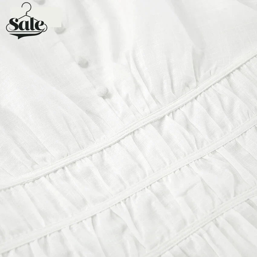 Crafted from 100% cotton, this dress offers a comfortable and breathable wear, perfect for those warm days. The A-line silhouette and high-waisted design create a flattering look, while the puff sleeves add a touch of charm and elegance.
