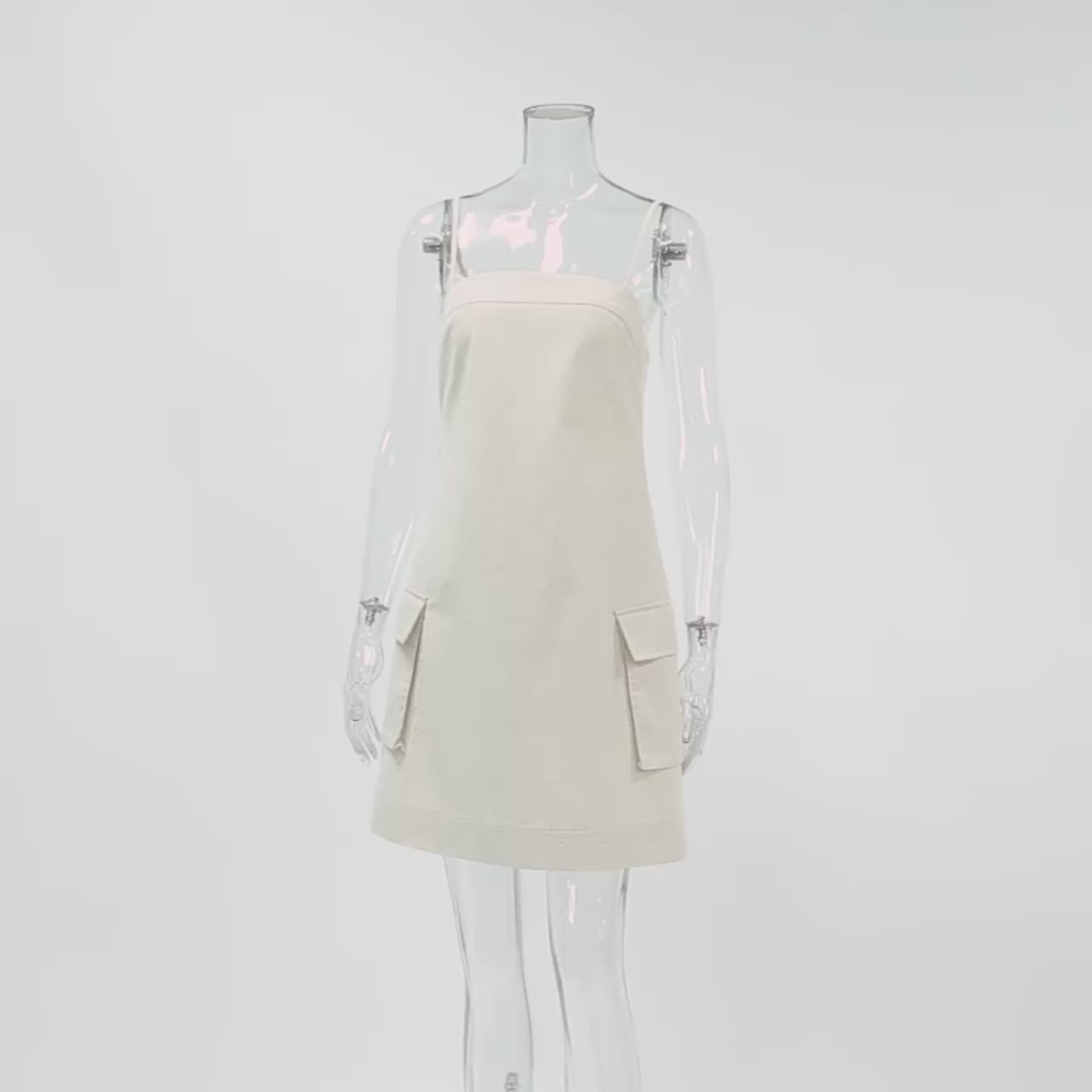 🌿 Casual Cotton Linen Cami Dress with Cargo Design 🌿